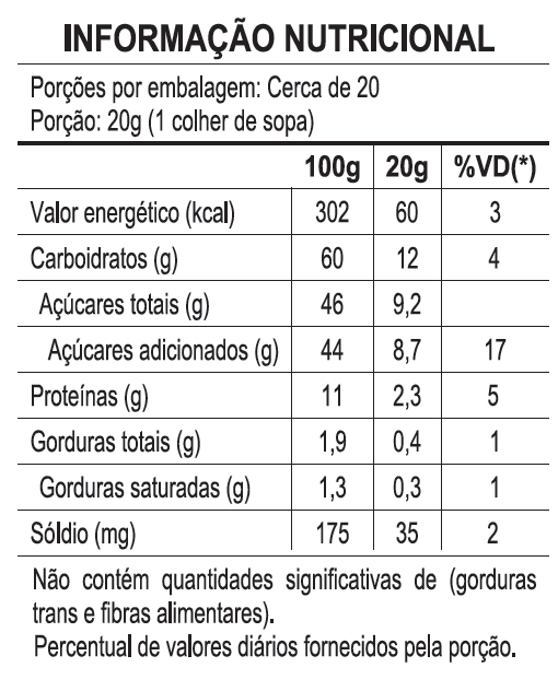Ingredientes: Leite pasteurizado desnatado e/ou leite em pó desnatado, leite pasteurizado integral e/ou leite em pó integral, açúcar e lactose.