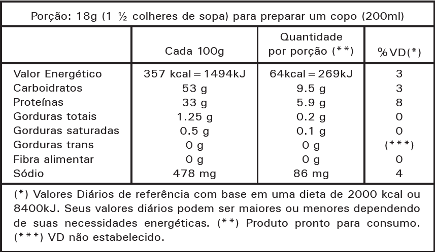 CONTÉM LEITE. CONTÉM LACTOSE. NÃO CONTÉM GLÚTEN